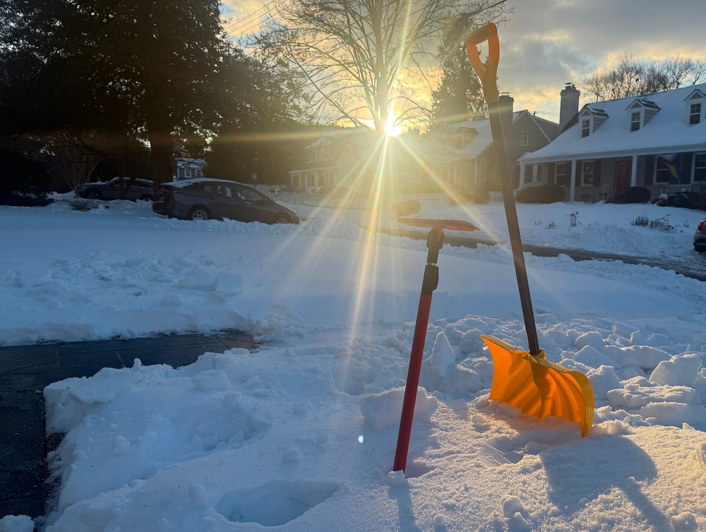 We shovel ourselves out. We help our neighbors shovel themselves out. We expel the evil force from our homes by any means necessary. And it won’t go away quickly, or easily, but with slow, steady, and persistent pressure and force applied in the right places, combined with assistance from the sun, the terrible thing that came into our homes is gone.